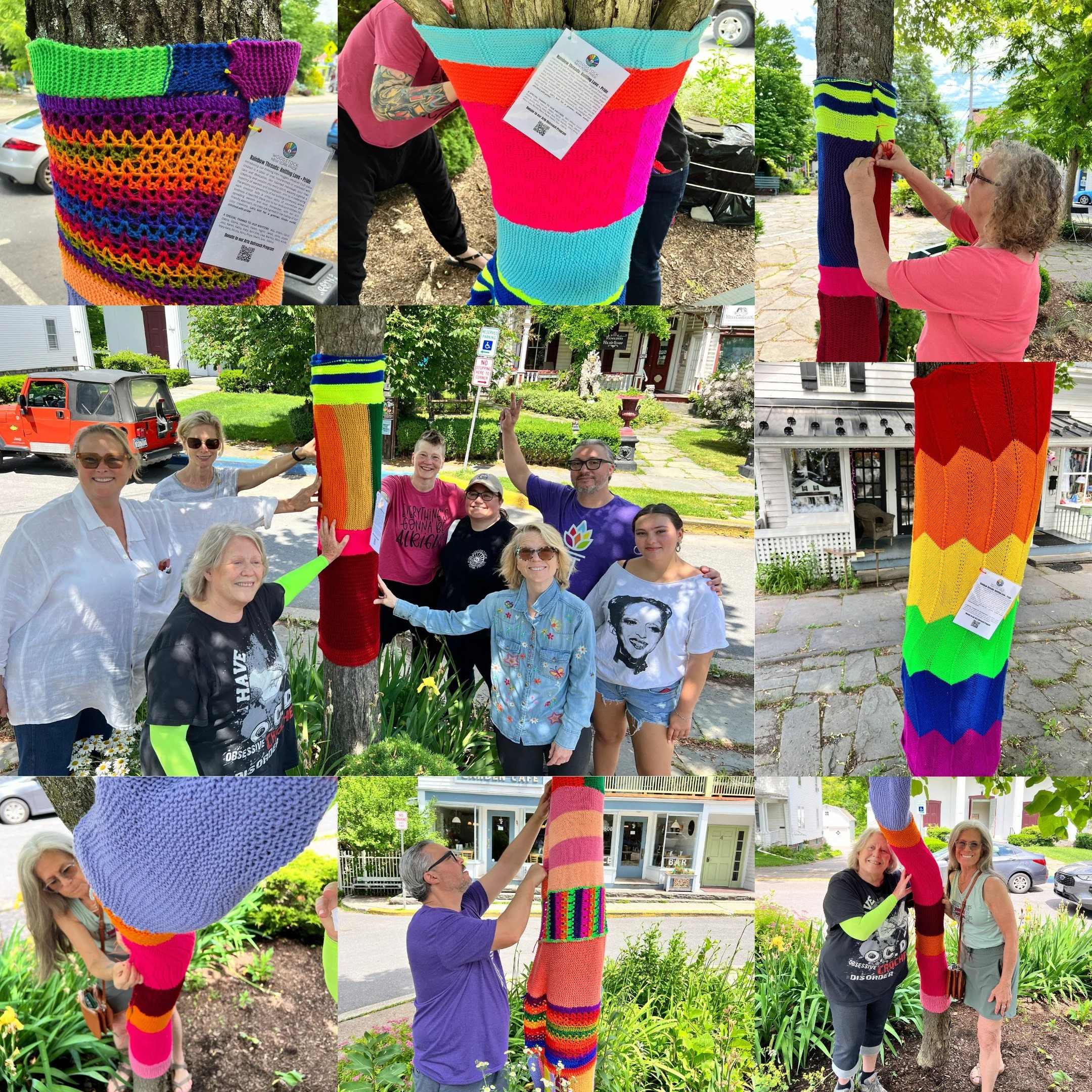 TREE INSTALLATIONS (PIECES ACCEPTED TILL JUNE 1ST) Help mend, expand, and add to last year’s knitted tree scarves installed around Woodstock. No trees are harmed.